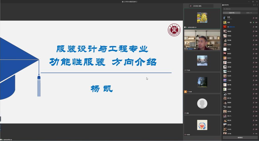 4月15日晚,服装设计与工程系开展特色党日活动,支部党员杨凯教授围绕新生专业认知和学业规划问题进行了题为“功能性服装方向介绍”的线上讲座。全体服工系教师和21级新生参加,活动由支部书记张启泽主持。