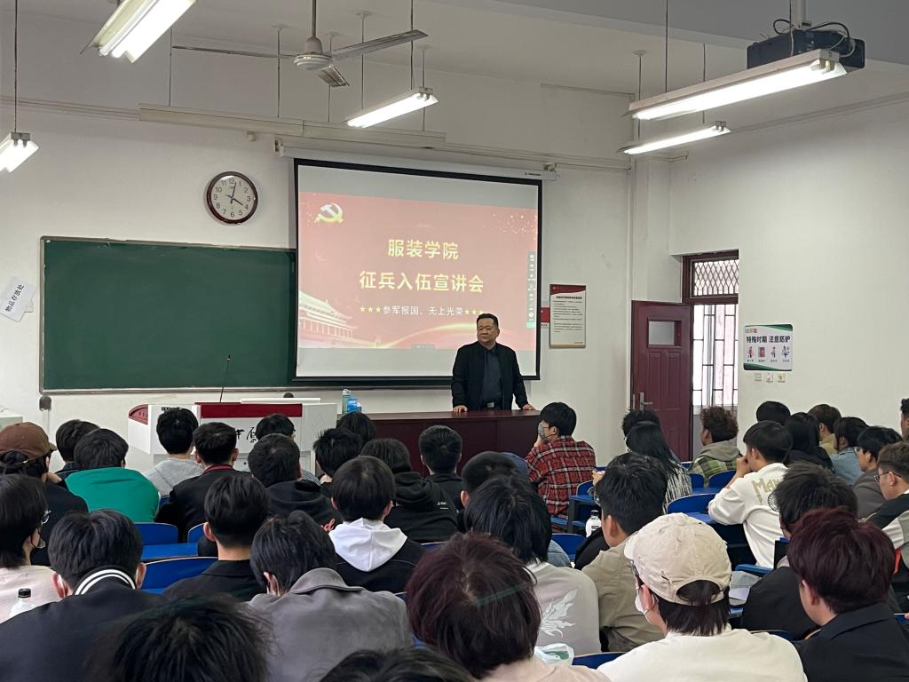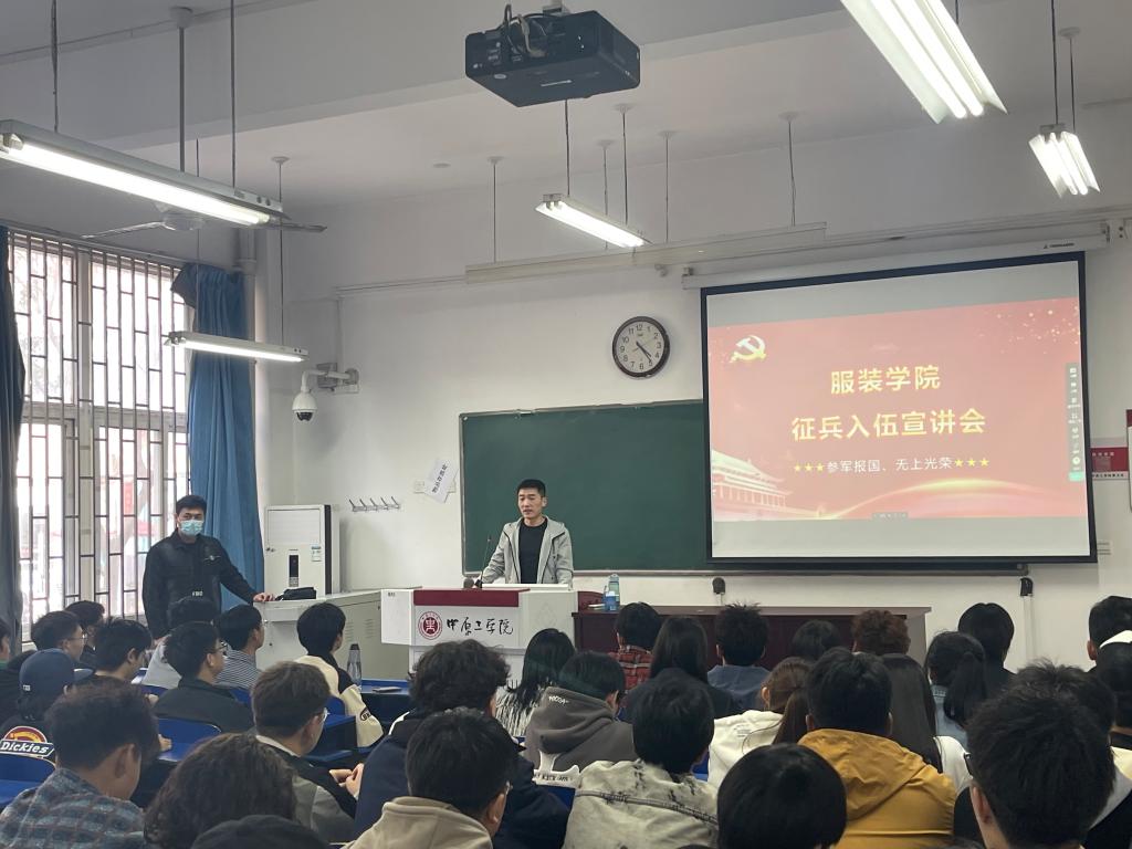 为全面落实国家关于做好高校在校生入伍预征决策部署,激发同学们的爱国热情,鼓励伟德体育官方网站同学积极参加应征入伍,3月28日下午,公司于二号组团楼D座110教室开展了主题为“参军报国,无上光荣”的征兵入伍宣讲会。会议邀请保卫处王毅老师、服工203班退伍复学同学刘永坤主讲,服装公司党委副书记王辉、伟德体育官方网站员工办公室主任蔡倩和四个年级的员工代表出席本次宣讲会。