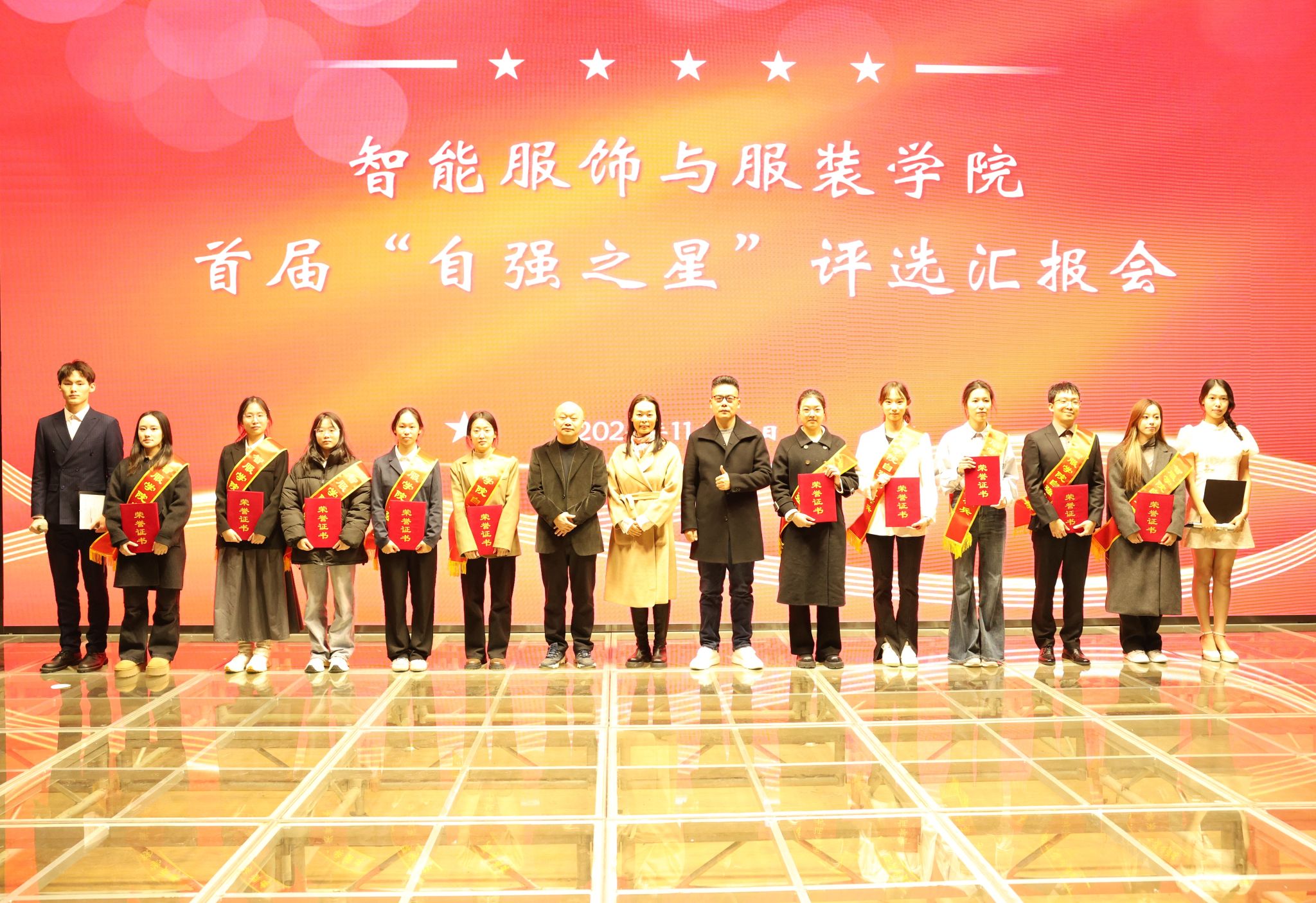 陈慧充分肯定和赞扬了同学们的事迹,认为同学们用行动诠释了自强的内涵,展现了服装学子坚韧拼搏、奋发向上的精神风貌。刘让同在总结讲话中指出,此次活动展示了服装学子在科研学习和实践锻炼中的沉淀和担当,在知行合一中淬炼的品格和毅力,并向在场同学提出了四点希望:一是以自强的精神,争做勇于转型的“弄潮儿”;二是以自信的风貌,争做坚于信仰的“举旗手”;三是以自立的品质,争做勤于磨砺的“接班人”;四是以自省的态度,争做追求进步的“前行者”。