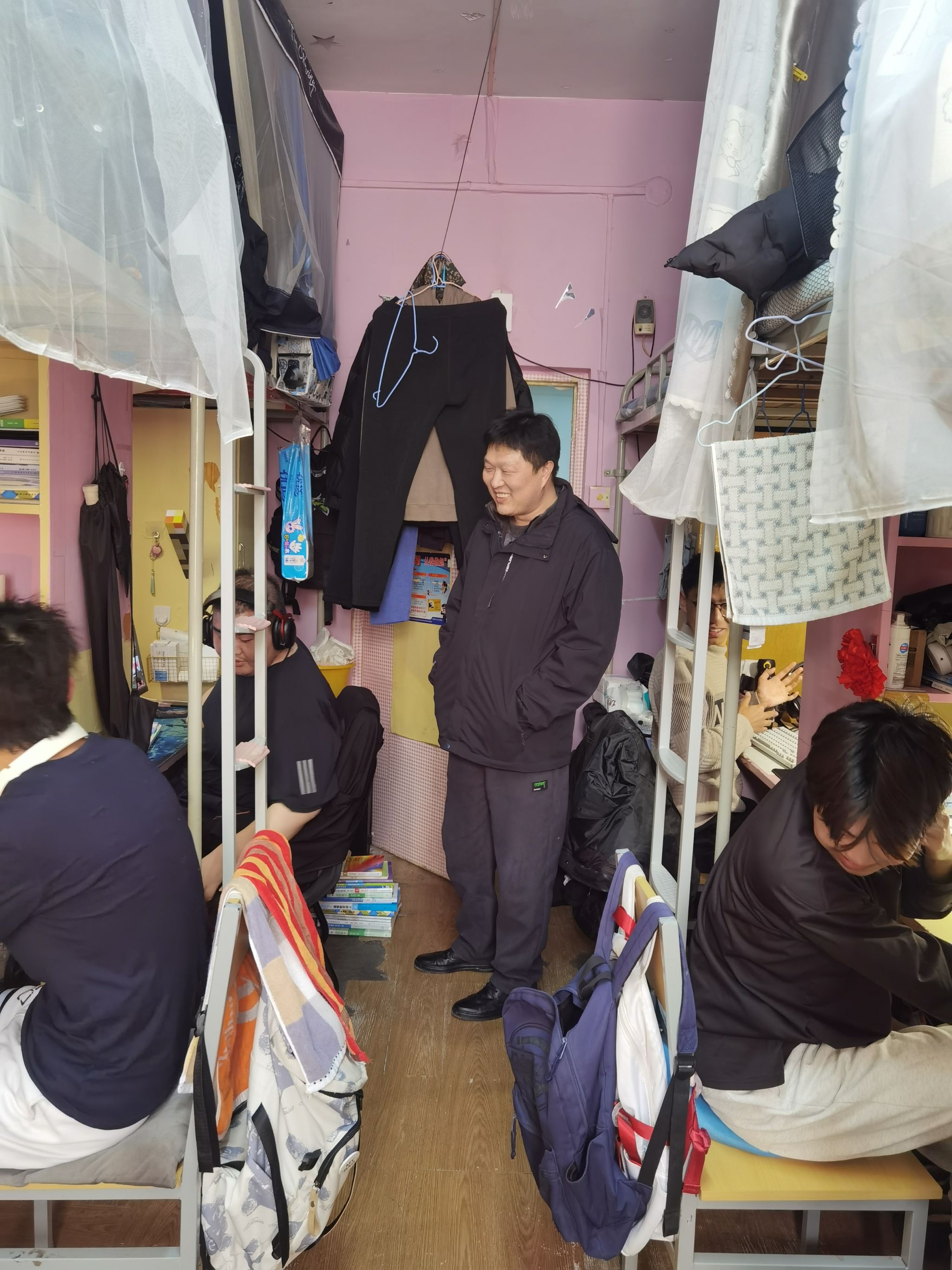 在检查宿舍消防安全和卫生情况时,公司领导重点查看了宿舍用电安全、消防设施配备以及卫生状况。曹江峰强调,安全无小事,同学们要时刻绷紧安全这根弦,严格遵守宿舍管理规定,杜绝使用违规电器,共同维护宿舍安全。曹江峰指出,良好的宿舍环境是同学们学习和生活的重要保障,希望大家能够保持宿舍整洁,营造温馨和谐的宿舍氛围。