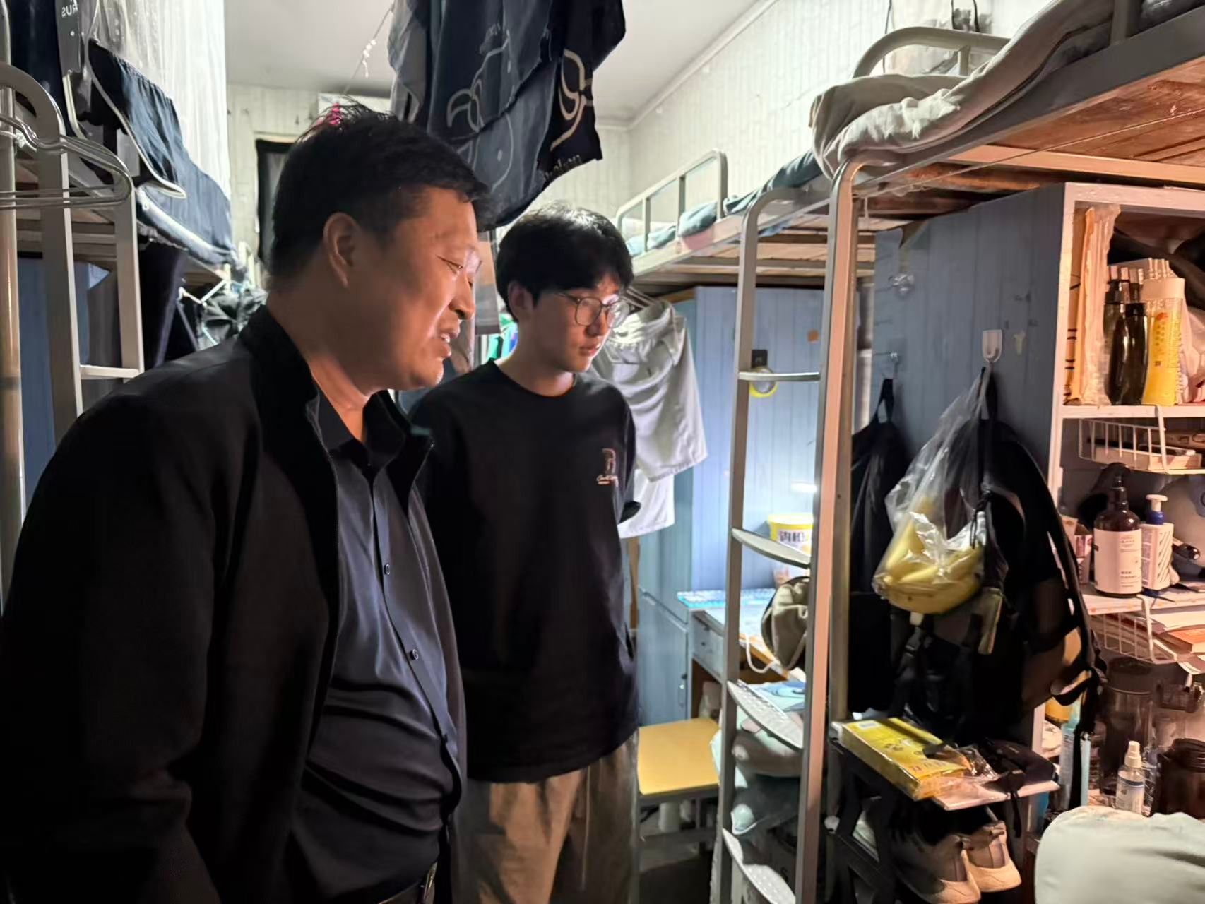 本次检查分为多组同步进行,覆盖全院员工宿舍。检查组重点排查了违规电器、易燃易爆物品等安全隐患,并对宿舍用电规范、线路安全、物品摆放等情况进行了细致检查。检查过程中,辅导员与员工进行“面对面”安全提醒,叮嘱员工及时清理杂物、保持疏散通道畅通,自觉遵守宿舍安全管理相关规定。