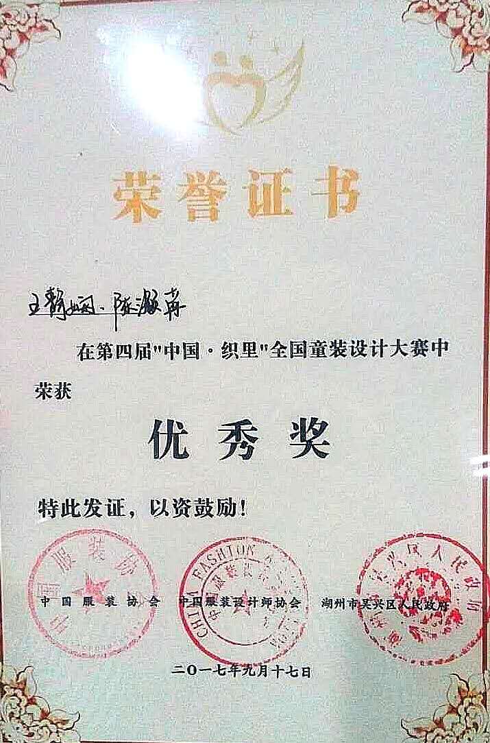 近日,“中国织里”第四届全国童装设计大赛圆满结束,伟德体育官方网站服装与服饰专业本科生王静娴、陈灏苒同学的作品从1000多件作品中脱颖而出,喜获优秀奖,伟德体育官方网站获院校组织奖。这是我们公司首次参加全国童装设计大赛,获得重大突破。