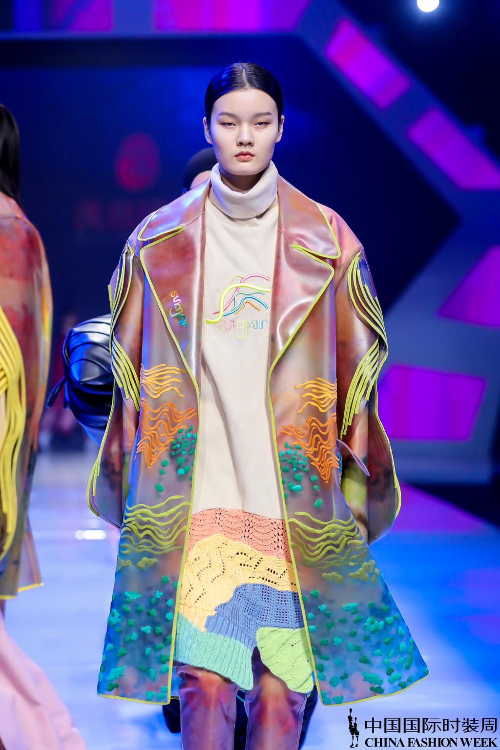 获奖系列服装作品《SAY IT AGAIN》着眼西装元素,如,袖型、领型等加以研究分析,运用解构、混搭、夸张的设计手法创新重组,采用当下流行的大廓形结构、叠加层次设计等元素,结合TPU面料的二次再造和刺绣,色彩上根据流行趋势采用丹霞地貌的自然颜色为主,将我国张掖大型丹霞地貌表现出来,结合当下流行时尚使服装具有较强市场性和卖点,极具表现意味。