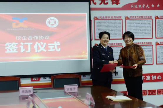 为了全面贯彻国家的教育方针,提高员工运用所学知识解决实际问题的能力,培养实践能力强、创新能力强、高素质复合型人才,不断提升公司的社会服务能力,12月1日,伟德体育官方网站师生代表赴广西华盛集团达信制衣有限责任公司举办校企合作实践基地挂牌仪式。伟德体育官方网站胡洛燕教授及服工19级员工代表,达信制衣梁惠芳总经理、各科室负责人及业务骨干参加了签约及挂牌仪式。