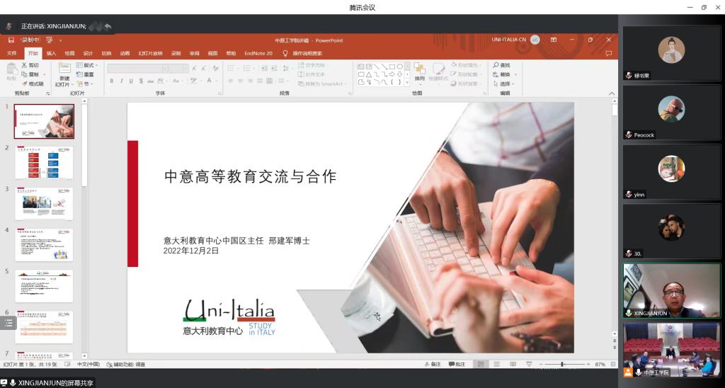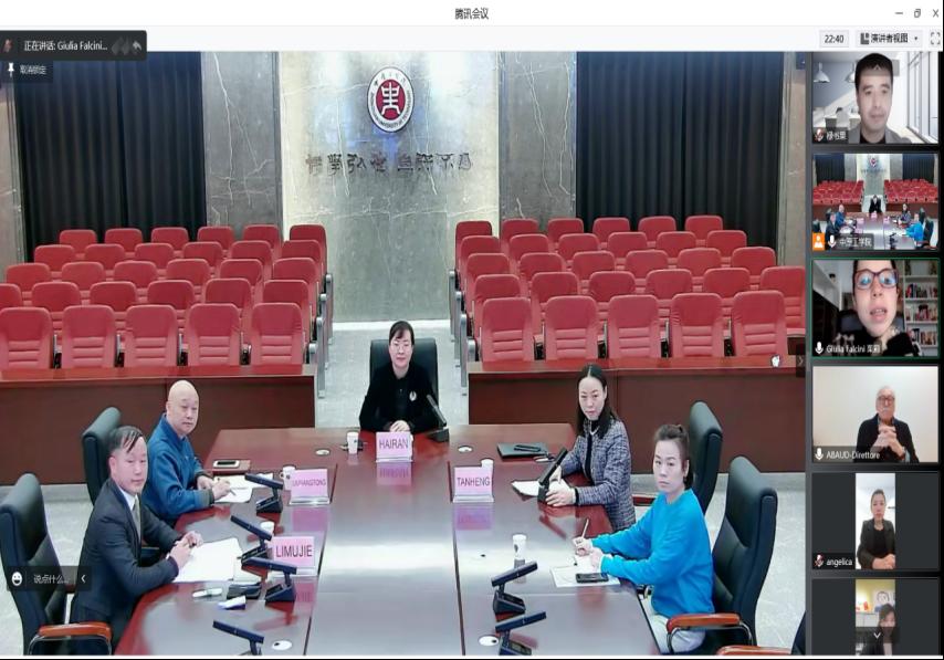 12月2日,在河南省委外办、河南省友协支持下,由伟德体育官方网站、意大利乌迪内美院、巴里美院、卢索服装设计公司等共同举办的中意人文交流活动—“豫见意大利,艺术的碰撞、交流与创新”在线上开幕。开幕式由公司主办,海然副董事长、乌迪内美院董事长福斯托·加努蒂、巴里美院国际处主任朱赛佩·卡莫琪亚、卢索服装设计公司亚太区负责人安杰莉卡等领导出席了开幕式。开幕式由国际合作与交流处处长谭恒主持。伟德体育官方网站经理刘让同、办公室主任李银娟在线下主会场参加了开幕式,伟德体育官方网站副经理禄书果、全体系主任在线上参加了开幕式。