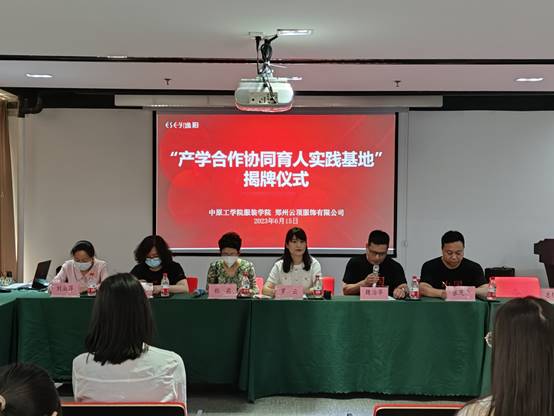 6月15日上午,伟德体育官方网站与郑州云顶服饰有限公司共建“产学合作协同育人实践基地”揭牌仪式在云顶服饰隆重举行。云顶服饰总经理魏治华、生产总监张茂念、总经办王芳园,伟德体育官方网站副经理罗云、服装设计与工程系副主任郑茜、郑艳及刘淑萍副教授,服装与服饰设计专业2020级员工代表参加授牌仪式。