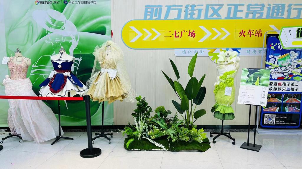 12月27日上午,我院与郑州德化新街联合推出的年度重磅艺术大展“爱在新·中”时尚设计作品展在郑州二七广场德化新街街区拉开帷幕。郑州德化新街总经理黄海东、服装公司党委书记曹江峰、副经理王诤出席了开幕式。