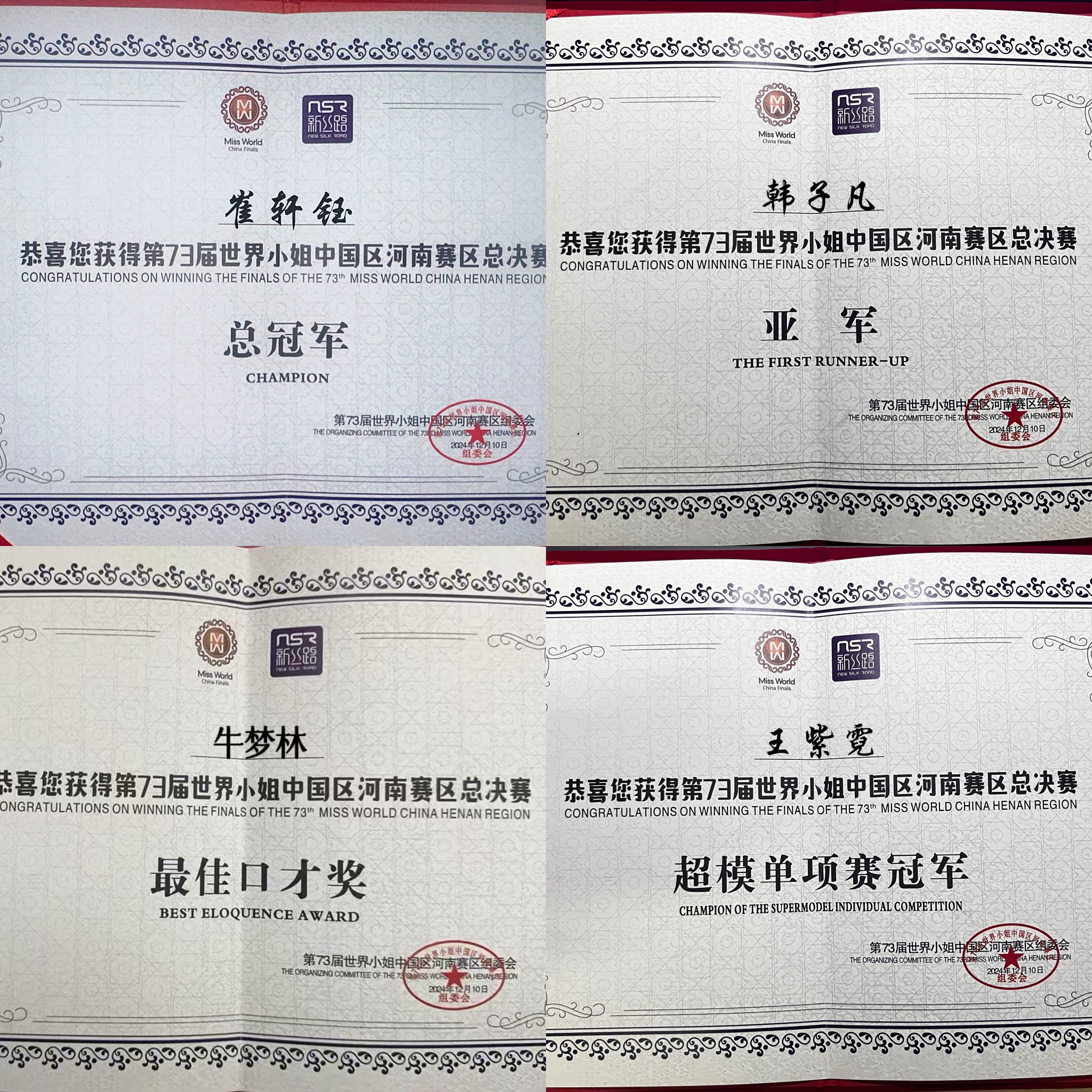 崔轩钰同学以其独特的气质和自信的台风,成功摘得总冠军的桂冠。韩子凡同学表现出色荣获亚军。王紫霓同学获得超模单项赛冠军,牛梦林同学获得最佳口才单项奖。同学们优雅的气质、自信的台风、扎实的基本功、出色的表现力赢得了评委、观众及媒体广泛的关注与赞誉。下一步,获奖学子将代表河南赛区参加全国总决赛为河南争光添彩!