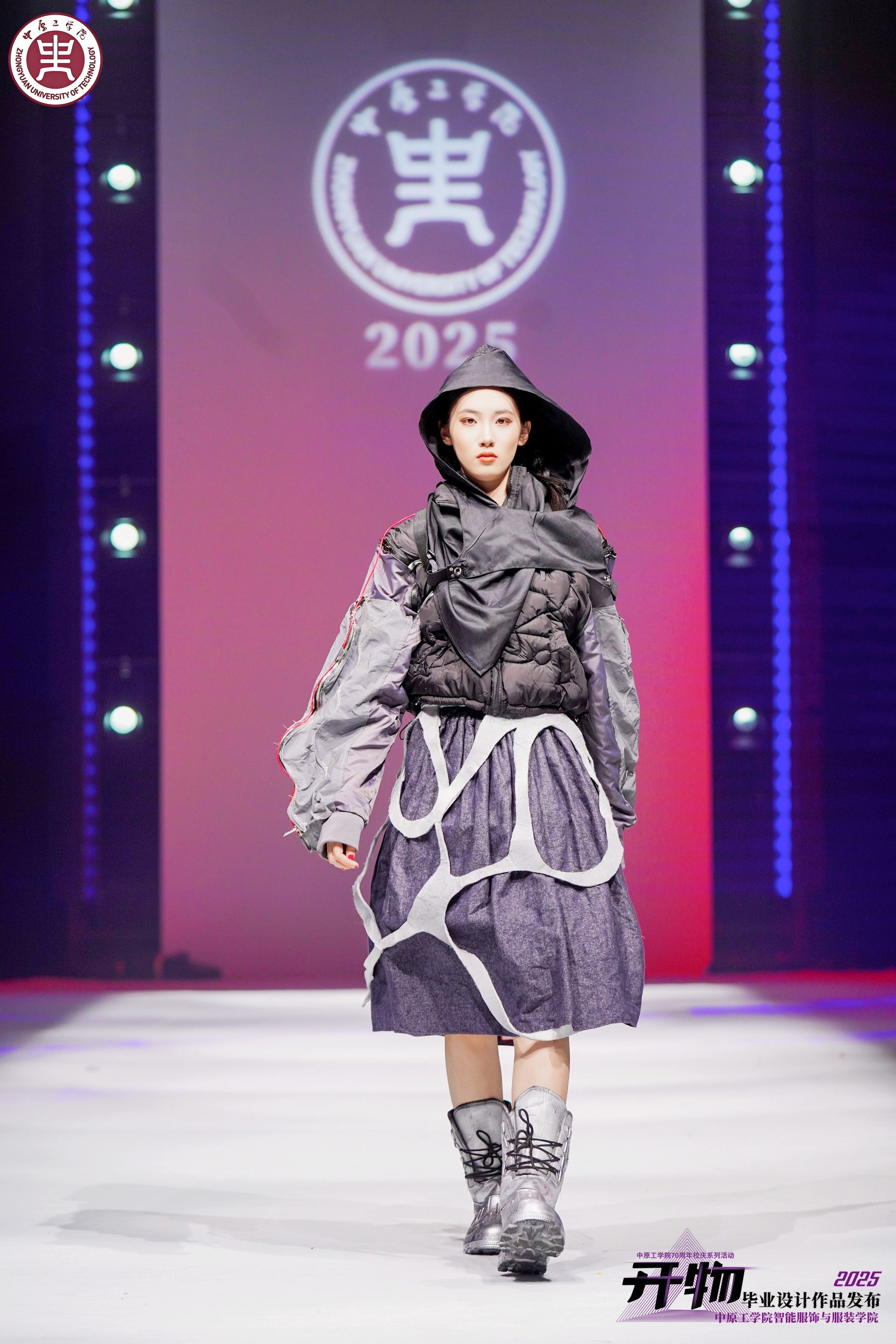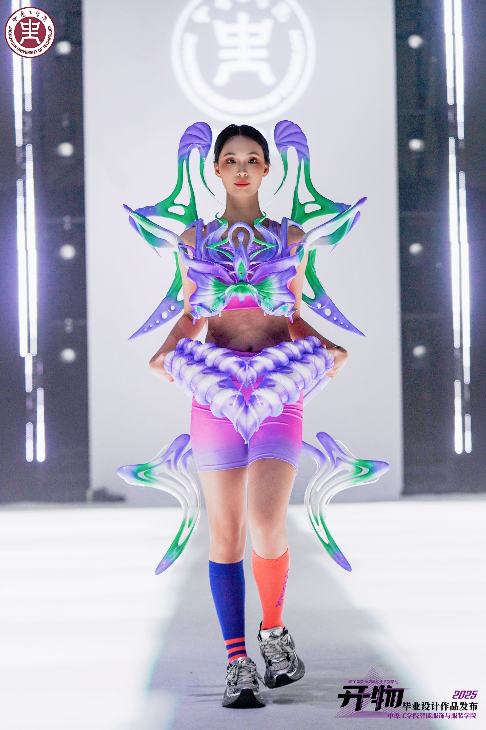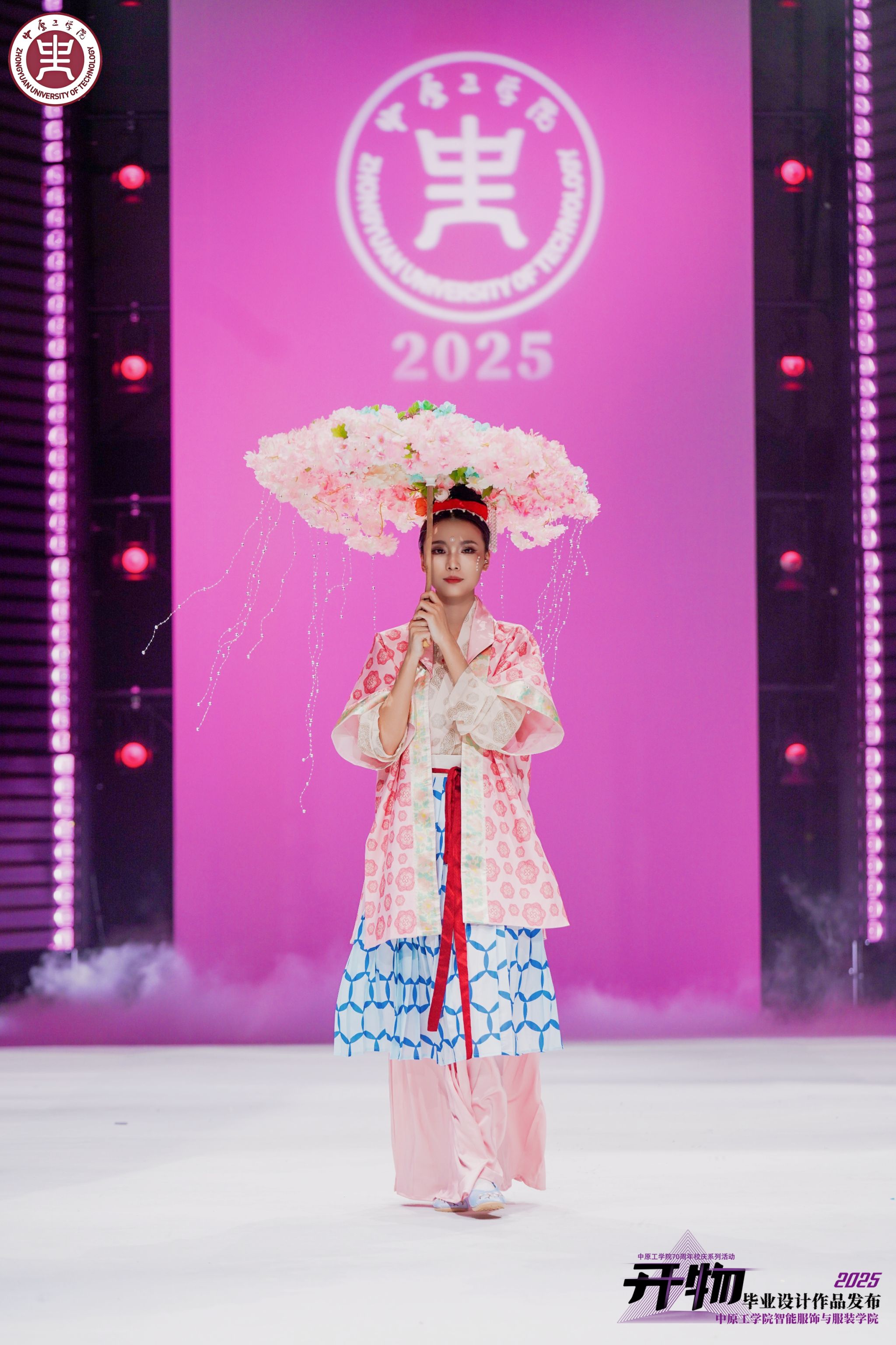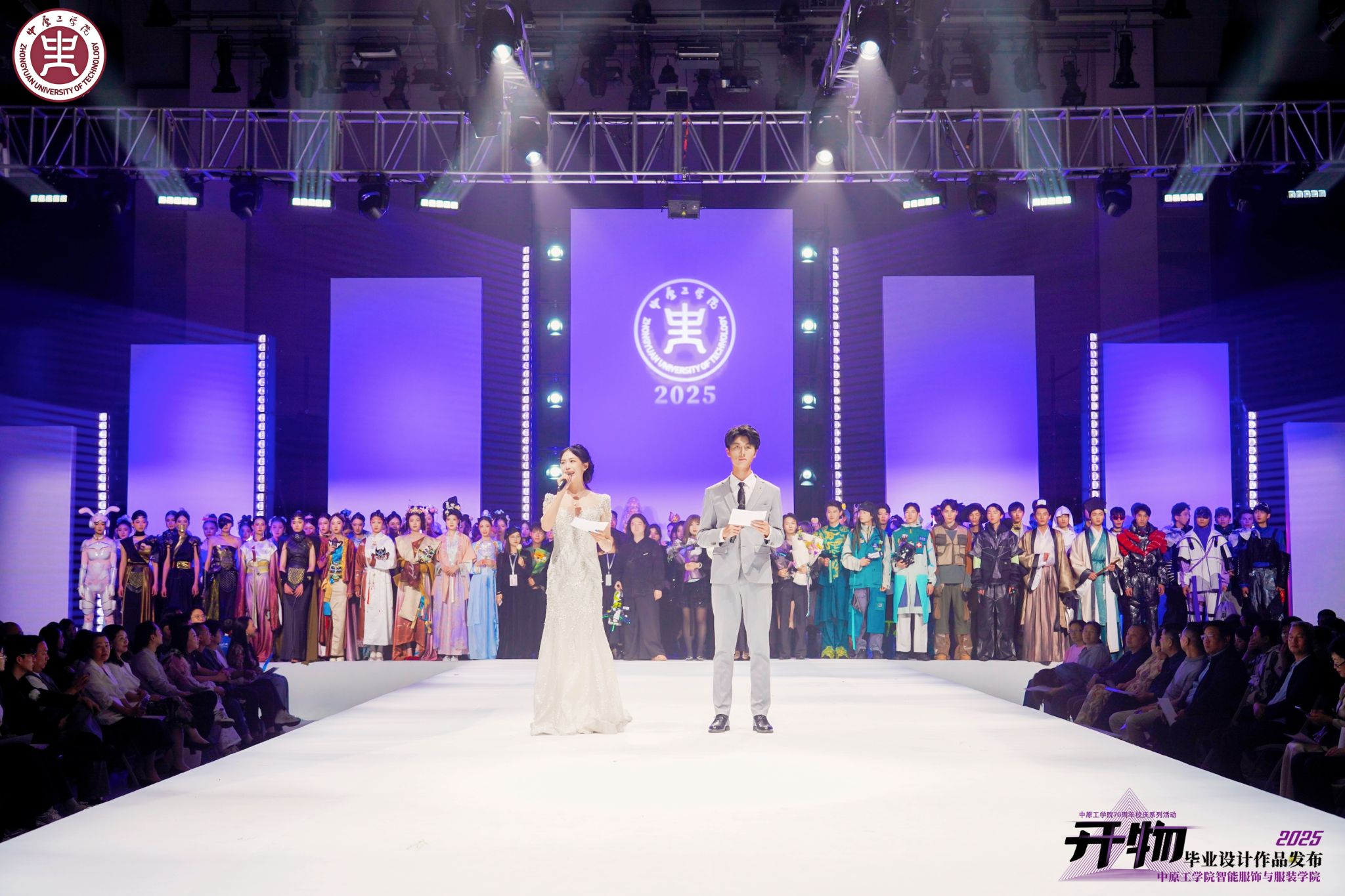 4月18至19日,公司70周年校庆系列活动·智能服饰与伟德体育官方网站2025届服装设计毕业作品展演在龙湖校区体育馆举行。本次展演以“开物”为主题,以“开物启新,创新创造”为寓意,以传统与时尚,创意与科技双融合为理念,突出“服饰+智能”、“设计+智能”,共展示公司服装设计专业2025届毕业生创作的43个系列作品,其中多个系列服装在中国医护服创新设计大赛、中国皮革裘皮时装设计大赛、国际青年服装设计大赛中获奖。集团领导、社会各界嘉宾及各院系师生共2000余人到场观看了演出,河南卫视、漯河日报等媒体同步进行线上直播。