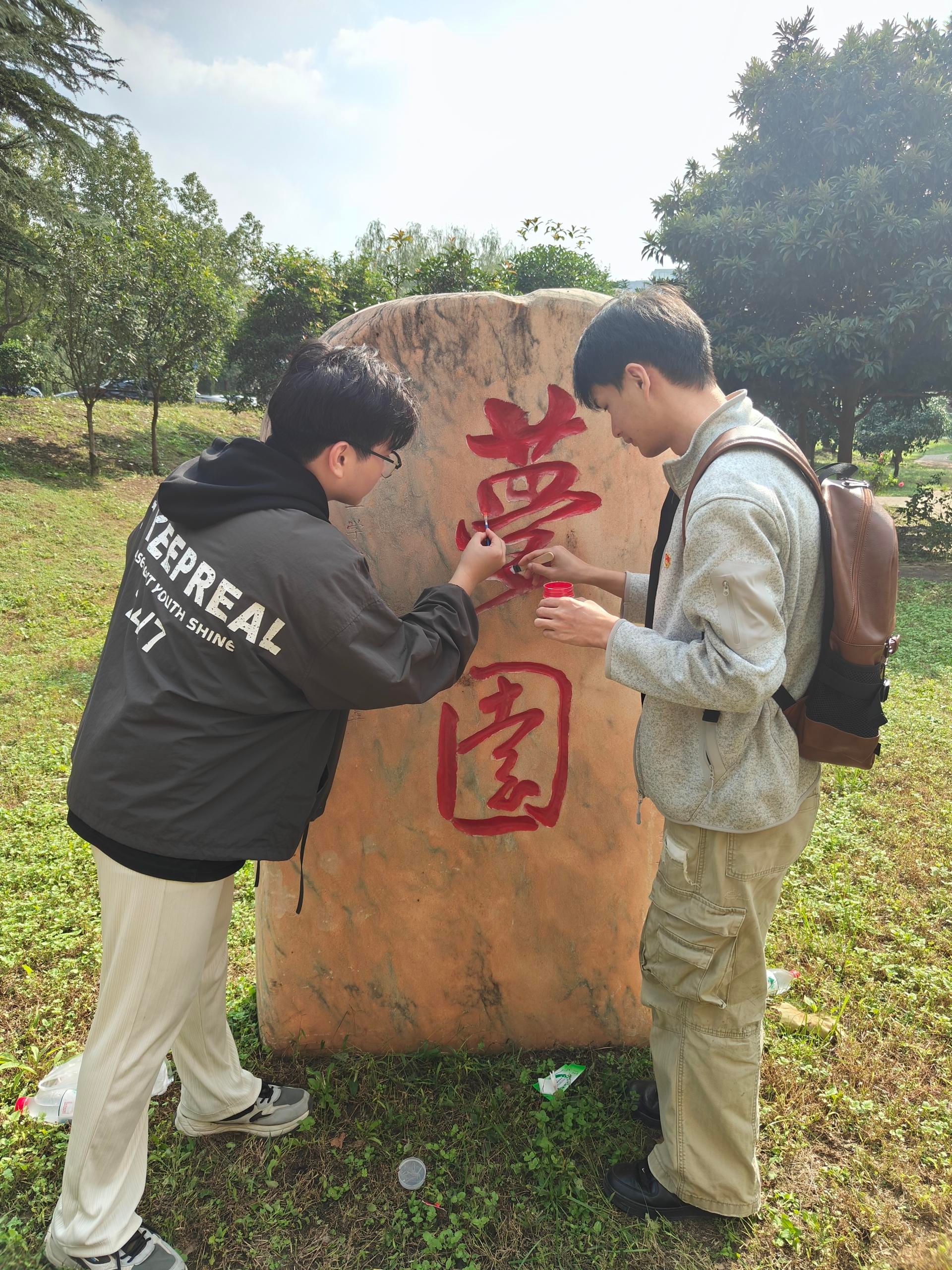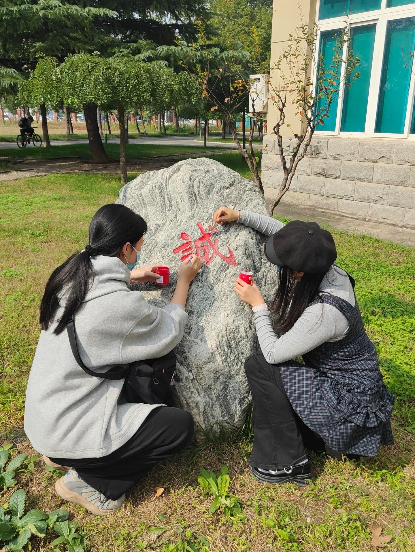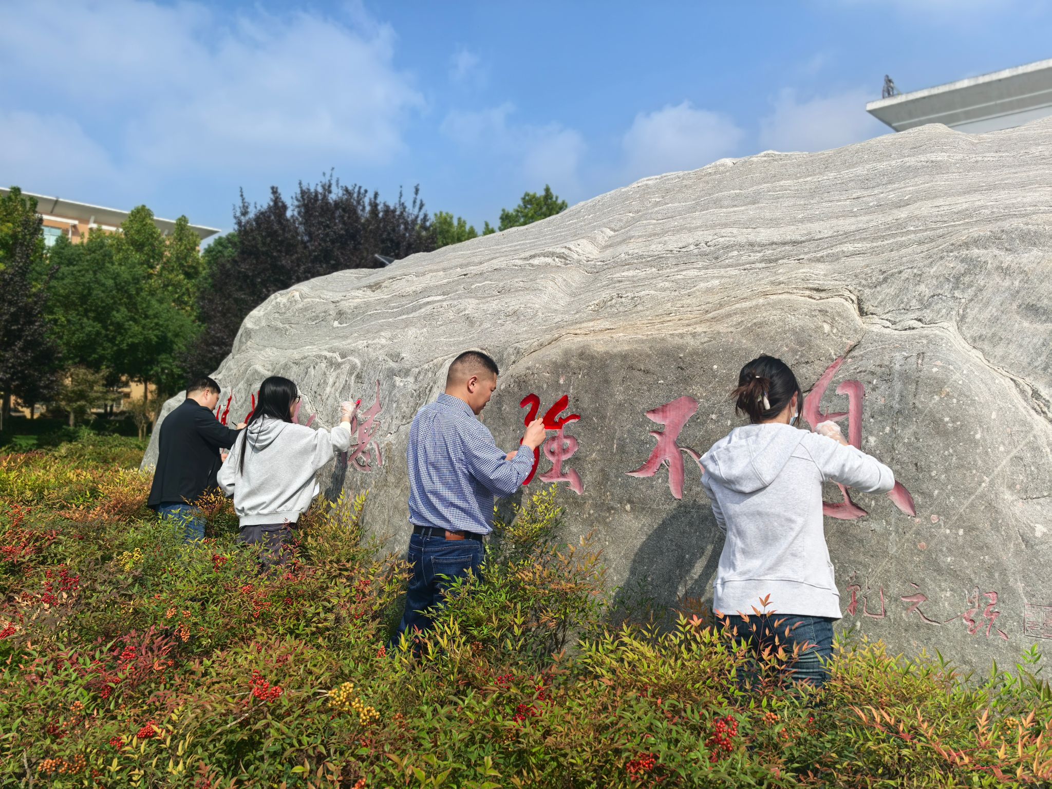 活动过程中,同学们神情专注、心手合一,分工协作、配合默契,用手中鲜艳的颜料认真细致地为观景石的文字添红加彩,点划撇捺间饱含着对母校的深情和70周年校庆的美好祝愿。经过一个下午的辛勤工作,校园内30余块景观石全部焕然一新、倍加精神。(通讯员 王峥)