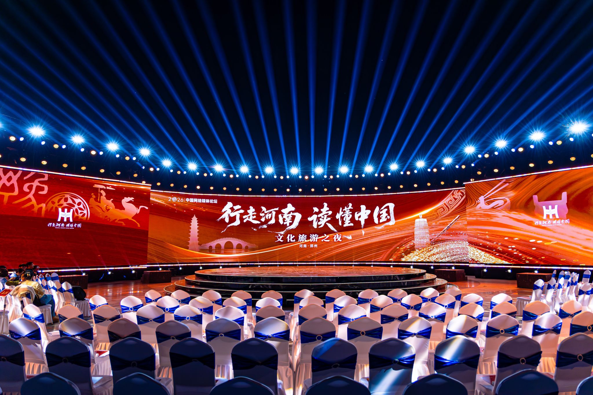 本届论坛由中央网信办、人民日报社、河南省委网信委联合主办,汇聚中央及地方党政机关、全国顶级新闻媒体、头部互联网平台、业界专家与网络名人等千余名重磅嘉宾。文化旅游之夜作为论坛先导活动,由河南省文旅厅主办,面向全国央媒、省市主流媒体及千万级网红大 V,以沉浸式文旅盛宴展现中原文化魅力。